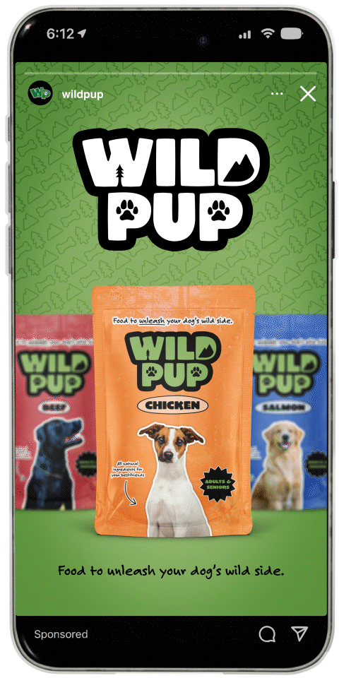 ‘Wild Pup’ is passion project which was briefed by @briefclub on Instagram. The aim of this project was to create a dog food brand that captures customers imagination beyond just good dog food. I wanted to create a brand that resonates with dog owners who 'live on the wild side’ with their canine friends. Customers of Wild Pup can share pictures of themselves and their dogs on their own wild adventures which would be shared on @WildPup socials.